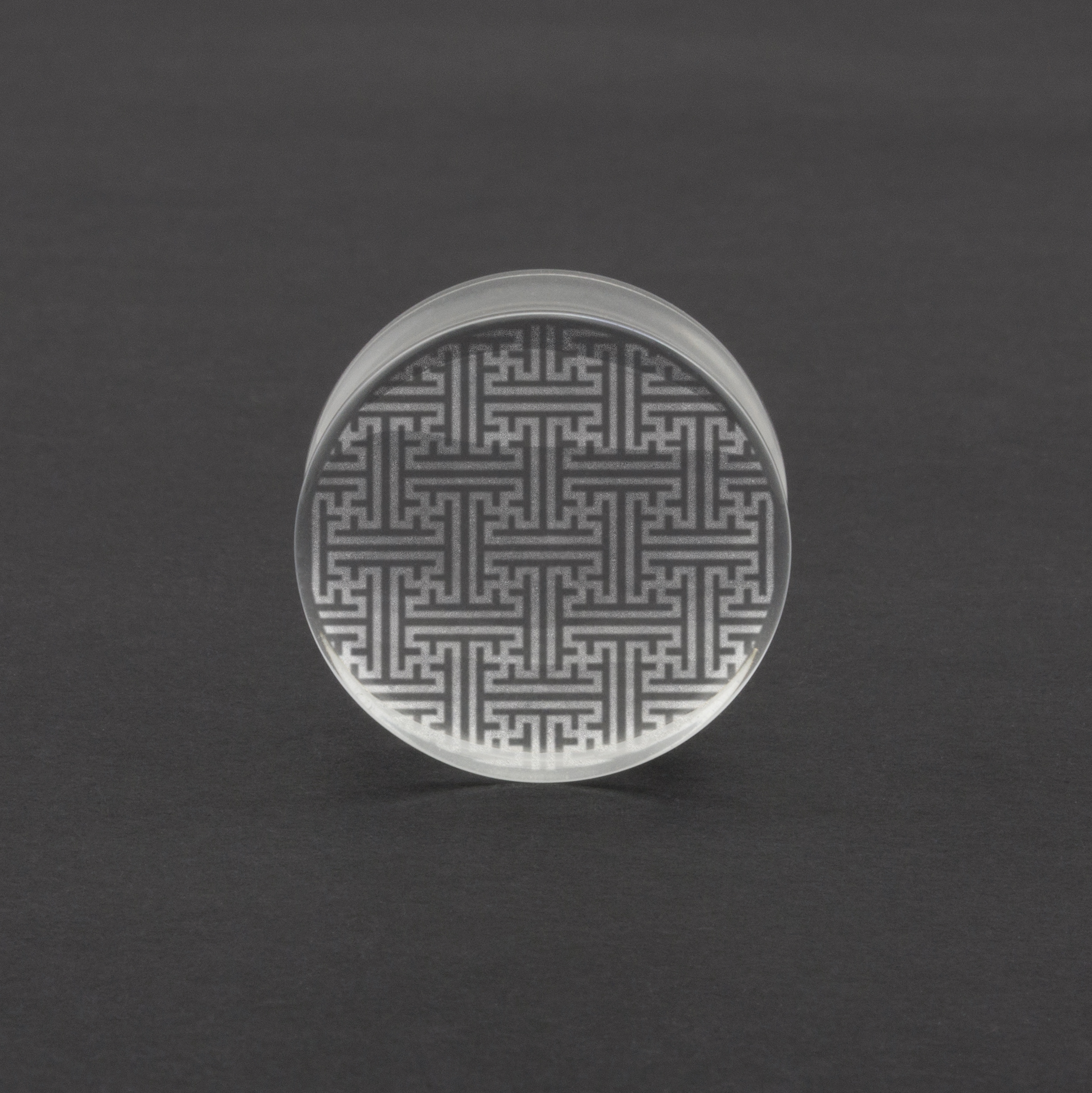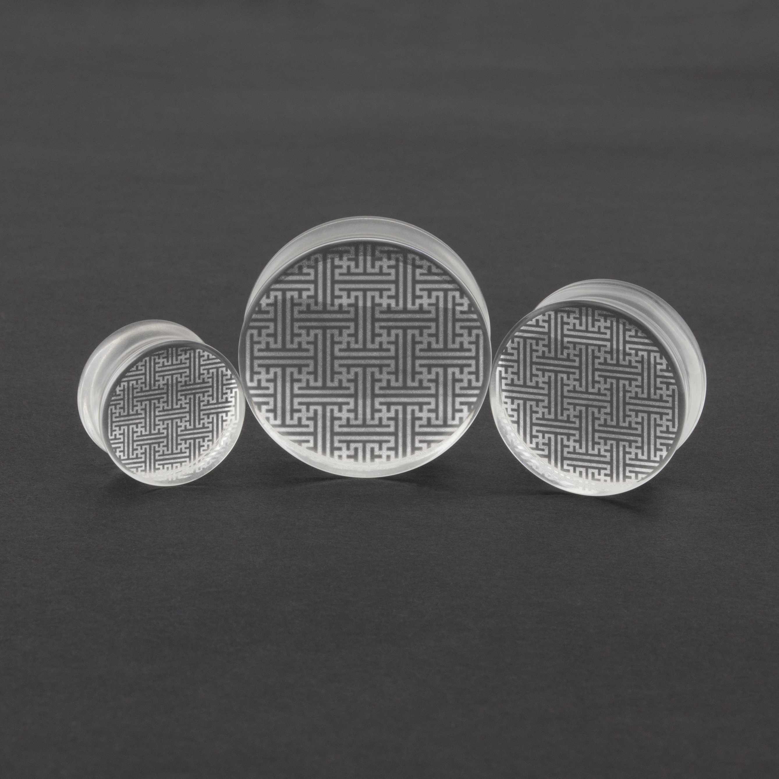 Sayagata glass ear plug. Laser engraved on clear glass plug by us in house giving it that personal hand made touch at a price that’s affordable.